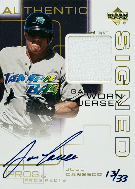 Top 100 Jose Canseco Baseball Cards – 2000 SP Pros & Prospects Game Jersey Autographs Gold #/33